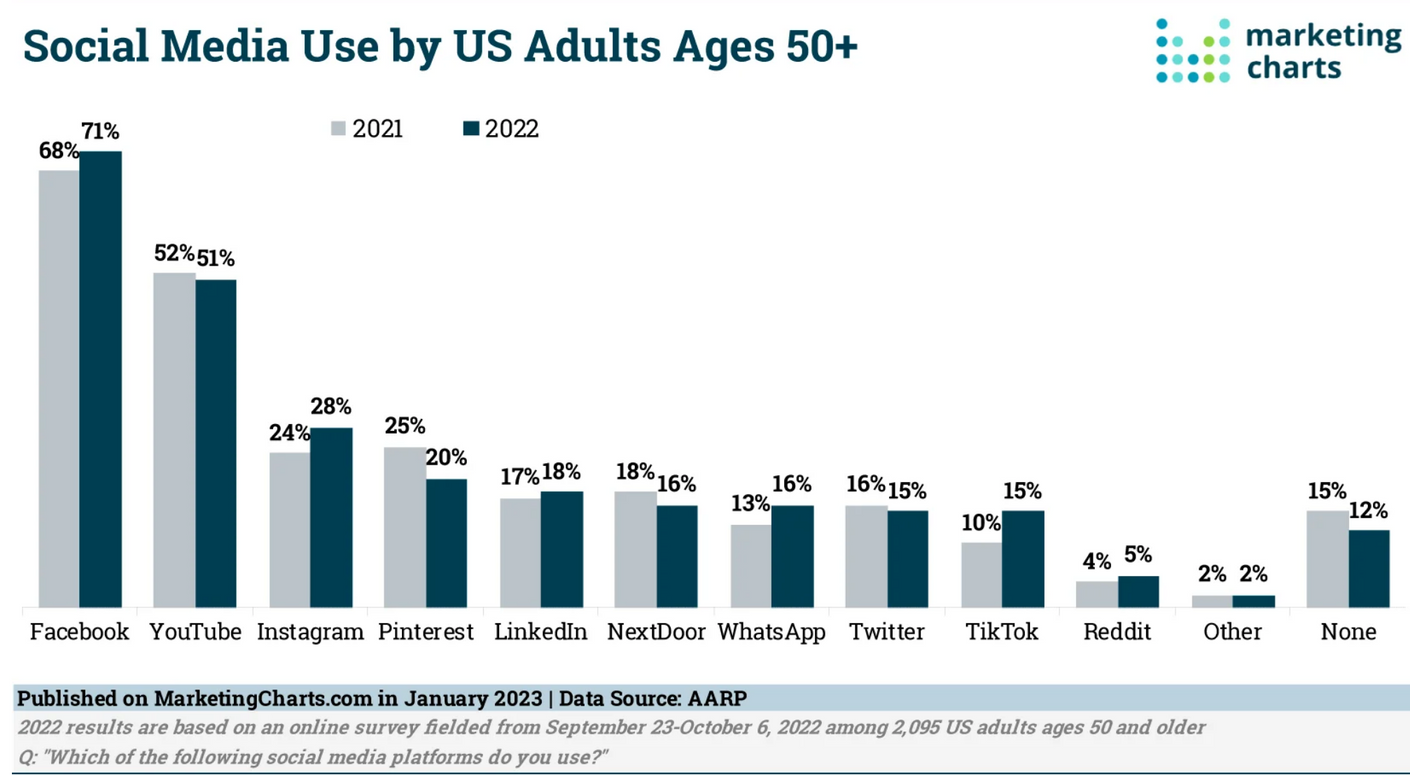 These statistics highlight the growing engagement of the 55+ age group with digital technology and social media, reflecting an important shift in their media consumption and technology use.